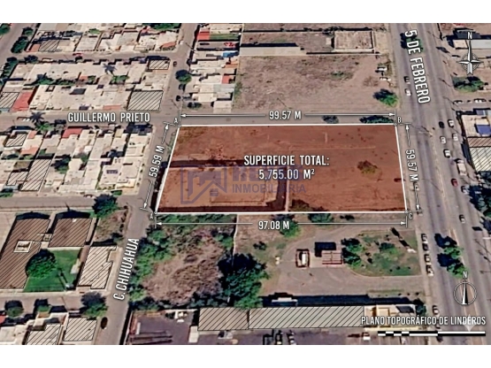 TERRENO C. 5 DE FEBRERO ESQUINA CON CALLE GUILLERMO PRIETO EN CIUDAD OBREGÓN, SONORA.
